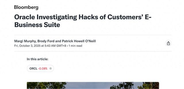 [环球网科技综合报道]据彭博社援引知情人士透露,在近期发生针对大型企业的勒索攻击后,甲骨文公司正在调查多起客户电子商务套件应用程序被入侵事件。